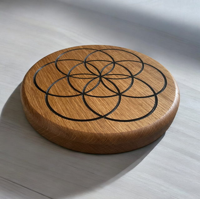 Seed of life Crystal grid made from English Oak. 20cm diameter, 2.5 cm thick.